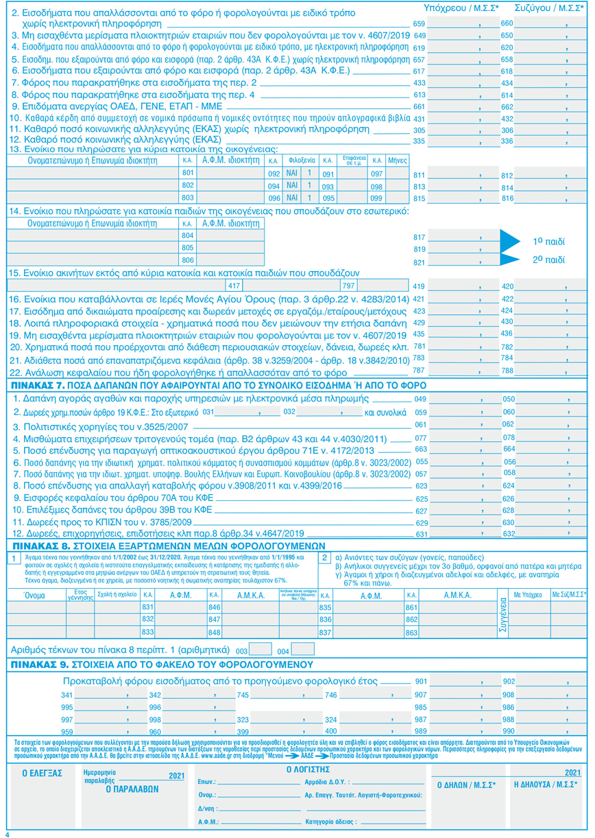 Φορολογικές δηλώσεις 2021: Οι νέοι κωδικοί