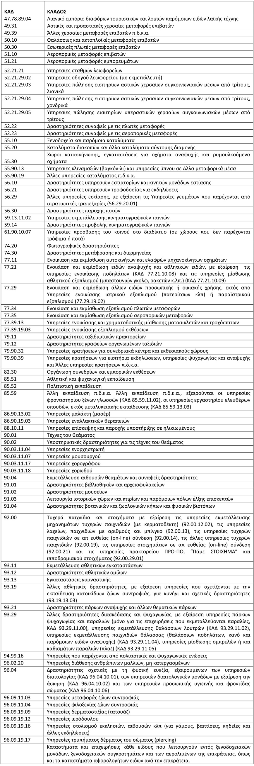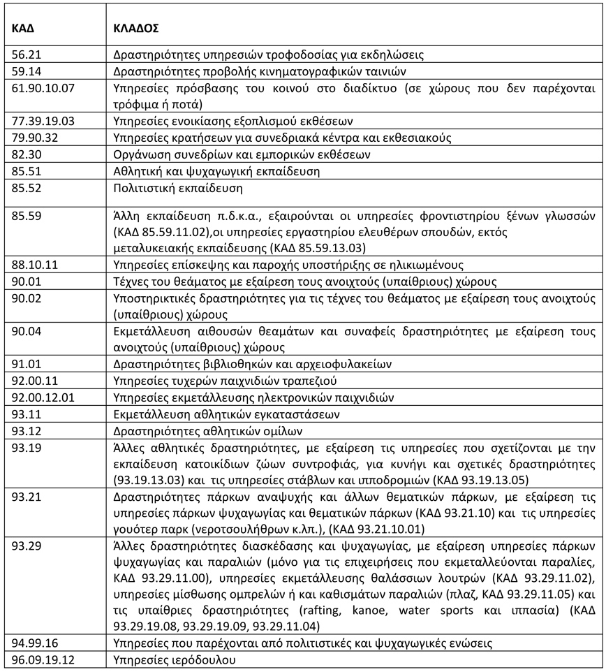 ΠΑΡΑΡΤΗΜΑ Α: ΠΙΝΑΚΑΣ ΚΩΔΙΚΩΝ ΑΡΙΘΜΩΝ ΔΡΑΣΤΗΡΙΟΤΗΤΑΣ ΓΙΑ ΤΟΥΣ ΟΠΟΙΟΥΣ ΔΕΝ ΙΣΧΥΟΥΝ ΤΑ ΚΡΙΤΗΡΙΑ ΕΠΙΛΕΞΙΜΟΤΗΤΑΣ
