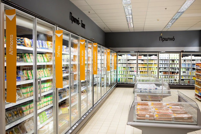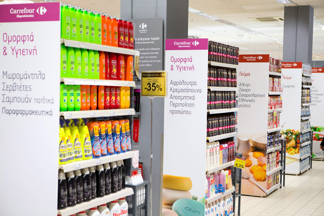 στοιχεία που συνθέτουν τη νέα ατμόσφαιρα του CarrefourΜαρινόπουλος, στο Μαρκόπουλο.