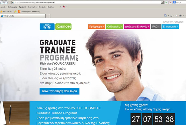 Ένα μοναδικό ξεκίνημα στην καριέρα 10 νέων ανθρώπων με δυνατότητες και προοπτικές προσφέρουν ο ΟΤΕ και η COSMOTE, υλοποιώντας το πρώτο ΟΤΕ-COSMOTE Graduate Trainee Program.