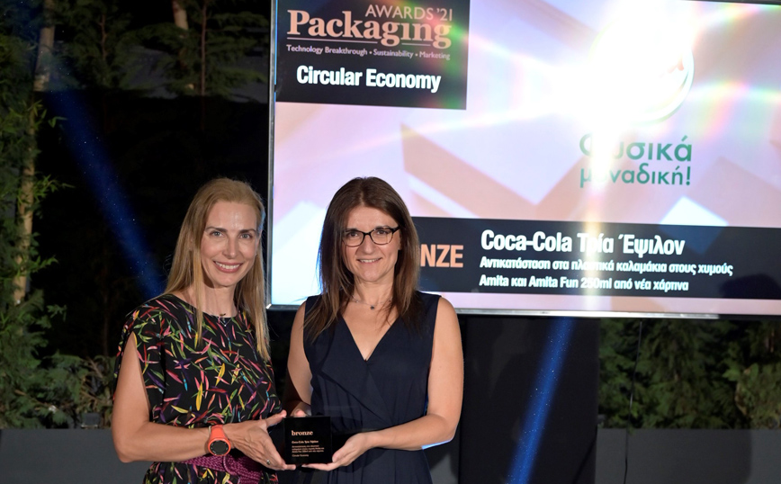 Bραβείο Bronze στην κατηγορία της Κυκλικής Οικονομίας στα Packaging Awards 2021, έλαβε η Coca-Cola Τρία Έψιλον για την εφαρμογή της καλής πρακτικής αντικατάστασης πλαστικών υλικών συσκευασίας (πλαστικά καλαμάκια) από υλικά κατασκευασμένα από χαρτί, στις συσκευασίες των χυμών Amita και Amita Fun των 250ml. Η διάκριση επιβραβεύει την καινοτομία, την τεχνολογία, καθώς και τις διαδικασίες που αξιοποιήθηκαν για τη συσκευασία του προϊόντος.