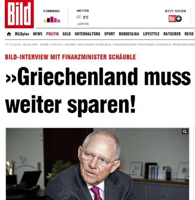 Από το 2009, η Ελλάδα έχει σημειώσει «τεράστια πρόοδο. Πρέπει να έχουμε περισσότερο σεβασμό για αυτό», δήλωσε ο γερμανός υπουργός Οικονομικών, σε συνέντευξή του που δημοσιεύεται το Σάββατο στην εφημερίδα Bild.