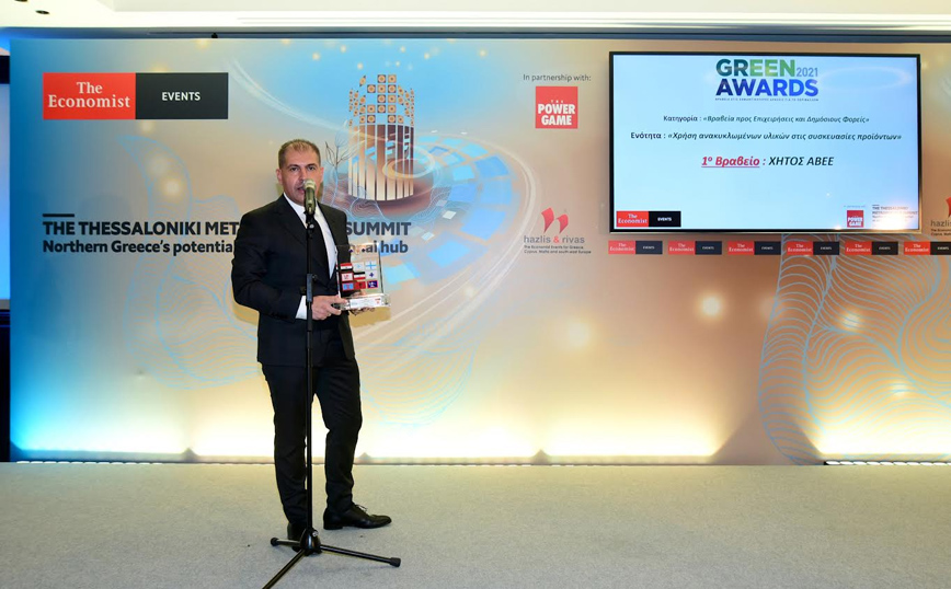 Η ΧΗΤΟΣ ΑΒΕΕ – Φυσικό Μεταλλικό Νερό ΖΑΓΟΡΙ, διακρίθηκε για την πρωτοβουλία ‘‘GO GREEN – Το πρώτο ελληνικό εμφιαλωμένο φυσικό μεταλλικό νερό σε φιάλες από 30% ανακυκλωμένο πλαστικό (r-pet)’’, στα Green Awards 2021. Τα βραβεία διεξήχθησαν στο πλαίσιο του συνεδρίου «The Thessaloniki Metropolitan Summit», υπό τη διοργάνωση των Economist και powergame.gr.
