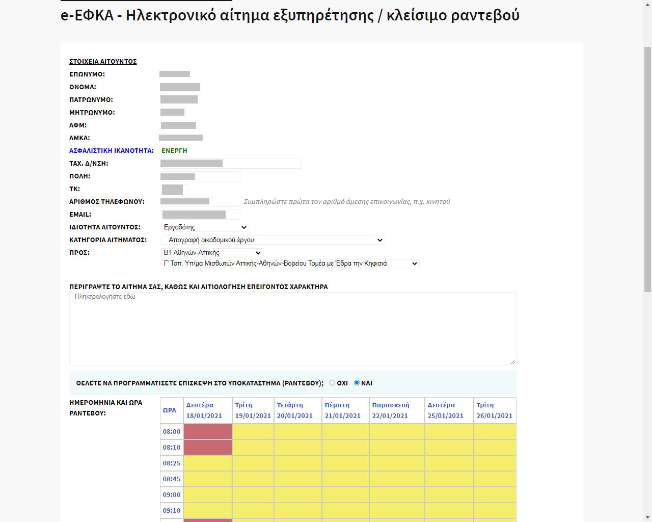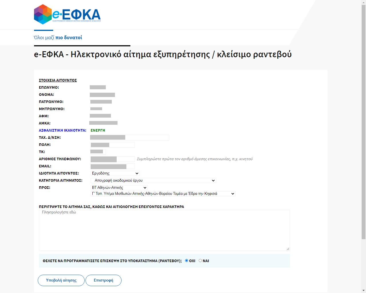 Για να δείτε τις κατηγορίες αιτήματος για τις οποίες ο ασφαλισμένος δύναται να κλείσει ραντεβού, πατήστε ΕΔΩ.