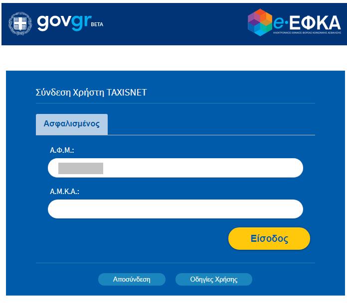 2. Αφού κάνετε Είσοδο με κωδικούς TAXISNET.