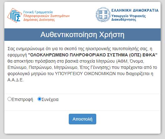 Υπηρεσιακή μονάδα ΕΦΚΑ: επιλέγετε από μενού τη μονάδα του ΕΦΚΑ που επιθυμείτε.