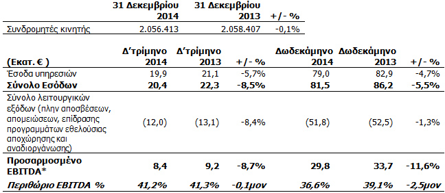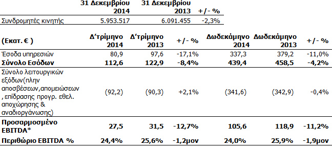 Ο δείκτης μικτού ΑRPU μειώθηκε κατά 8,5% το δωδεκάμηνο του 2014 σε σχέση με το δωδεκάμηνο του 2013, λόγω του μειωμένου ARPU από εισερχόμενη κίνηση, καθώς επηρεάστηκε αρνητικά από τις μειώσεις των τελών διασύνδεσης και το ιδιαίτερα ανταγωνιστικό περιβάλλον.