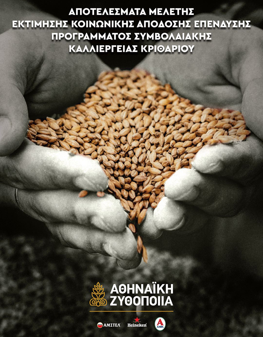 Η Αθηναϊκή Ζυθοποιία, στο πλαίσιο του Προγράμματος Συμβολαιακής Καλλιέργειας Κριθαριού, πραγματοποίησε μελέτη Εκτίμησης Κοινωνικής Απόδοσης Επένδυσης (Social Return On Investment -SROI), αναδεικνύοντας τα οφέλη της συγκεκριμένης πρωτοβουλίας, τόσο για τους αγρότες, όσο και για την ελληνική οικονομία, τον πρωτογενή τομέα και τις τοπικές κοινωνίες.