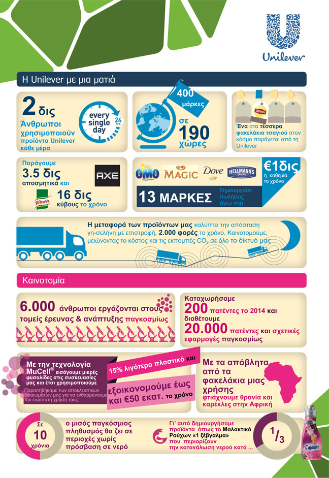 Ο Paul Polman, πρόεδρος της Unilever, δήλωσε: «Σε ένα διαρκώς μεταβαλλόμενο κόσμο αυξανόμενης κοινωνικής ανισότητας, ταχείας αύξησης του πληθυσμού, αναπτυξιακών προκλήσεων και κλιματικής αλλαγής, η ανάγκη προσαρμογής των επιχειρήσεων είναι σαφής, όπως σαφή είναι τα οφέλη και οι ευκαιρίες. Εάν θέλουμε να συνεχίσουμε να αναπτυσσόμαστε θα πρέπει να υιοθετήσουμε μια προσέγγιση αλλαγών σε βάθος σε όλη την εφοδιαστική αλυσίδα. Αυτό το αναγνωρίζουν και οι καταναλωτές οι οποίοι, όλο και περισσότερο, απαιτούν υπεύθυνες επιχειρήσεις και υπεύθυνα προϊόντα. Σύμφωνα με την εμπειρία μας, τα προϊόντα που ανταποκρίνονται σε αυτό το αίτημα -τα “αειφόρα προϊόντα”- εξασφαλίζουν μεγαλύτερη και ταχύτερη ανάπτυξη. Στις μάρκες αυτές πιστώνεται το ήμισυ της ανάπτυξης της εταιρείας μας κατά το 2014, ενώ οι ίδιες αναπτύχθηκαν σε διπλάσιο ποσοστό, σε σχέση με την υπόλοιπη επιχείρηση».