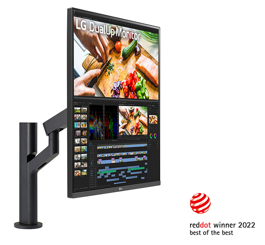 Ο τρίτος τιμητικός τίτλος Best of the Best Red Dot για την LG φέτος πήγε στο LG DualUp Ergo Monitor, το οποίο έχει σχεδιαστεί για να προσφέρει ανώτερη εμπειρία θέασης με μεγαλύτερη, εργονομική άνεση. Με αναλογία διαστάσεων 16:18, οθόνη ανάλυσης 2.560 x 2.880, κομψό, πρακτικό σχεδιασμό και βελτιωμένη συνδεσιμότητα, το DualUp Ergo Monitor βελτιώνει την άνεση του χρήστη με την εξαιρετικά ρυθμιζόμενη και αποδοτική βάση LG Ergo, η οποία στερεώνεται με ασφάλεια στα περισσότερα γραφεία και τραπέζια.
