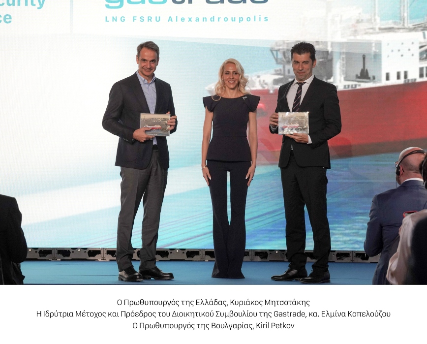 Η ιδρύτρια Μέτοχος και Πρόεδρος του Διοικητικού Συμβουλίου της Gastrade, κα. Ελμίνα Κοπελούζου σημείωσε: «Ο ενεργειακός χάρτης αλλάζει. Μπαίνουμε πλέον στην τελική ευθεία υλοποίησης του FSRU Αλεξανδρούπολης, ενός σημαντικού και καινοτόμου έργου για την ελληνική πραγματικότητα. Σε μια περίοδο ρευστότητας στο γεωπολιτικό και ενεργειακό τοπίο, με το συγκεκριμένο έργο, η Ελλάδα δείχνει στην Ευρώπη πως μπορεί να απαντήσει με σταθερά στρατηγικά βήματα στην αβεβαιότητα των καιρών και, μέσα από την ανάπτυξη, να προσφέρει λύσεις από τις οποίες όλοι μπορούν να βγουν κερδισμένοι. Το FSRU Αλεξανδρούπολης ανοίγει μια νέα ενεργειακή πύλη για την Ελλάδα και τη Νοτιοανατολική Ευρώπη, που σε μια κρίσιμη στιγμή έρχεται να καλύψει μία επείγουσα εθνική και ευρωπαϊκή ανάγκη. Από την ακριτική αυτή πόλη που τόσο αγκάλιασε το έργο μας, καθιστούμε την Ελλάδα ενεργειακό σημείο αναφοράς στην περιοχή, συμβάλλοντας στην ενεργειακή ασφάλεια και στη διαφοροποίηση των πηγών εφοδιασμού, με οφέλη για εκατομμύρια πολίτες σε τόσες διαφορετικές χώρες».