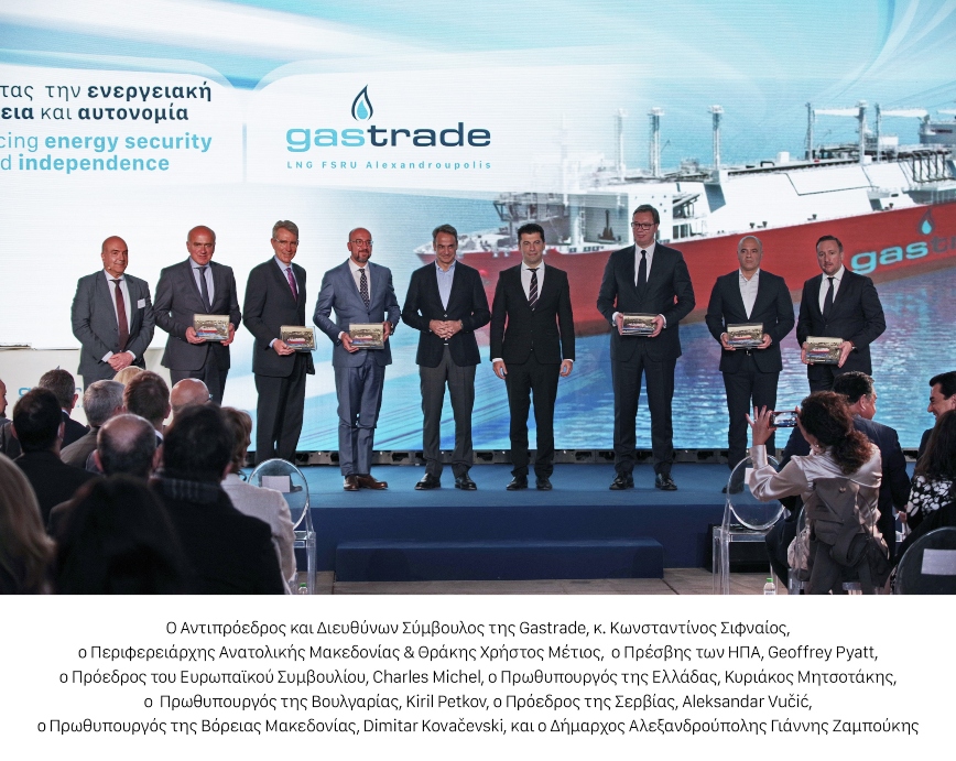Ο Αντιπρόεδρος και Διευθύνων Σύμβουλος της Gastrade, κ. Κωνσταντίνος Σιφναίος, τόνισε πως: «Η στρατηγική και οικονομική αναγκαιότητα αλλά και η σημασία του έργου του Σταθμού LNG της Αλεξανδρούπολης είναι κάτι περισσότερο από πρόδηλες στο νέο ενεργειακό τοπίο. Με αυτό το τόσο σημαντικό έργο που έχει φέρει κοντά τις χώρες που κατοικούν σ’ αυτή τη γειτονιά της Ευρώπης, προάγοντας τη συνεννόηση, τη συνεργασία, την αλληλεγγύη και τελικά την ειρήνη στη περιοχή, ενισχύουμε την περιφερειακή ενεργειακή ασφάλεια, την ενεργειακή ρευστότητας, την ασφάλεια και την ευημερία των πολιτών ολόκληρης της περιοχής της ΝΑ Ευρώπης.