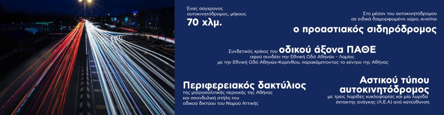 Η Αττική Οδός είναι ένας σύγχρονος αυτοκινητόδρομος μήκους περίπου 70 χλμ., που κατασκευάστηκε τη δεκαετία του 1990 με τη μέθοδο της παραχώρησης. Αποτελεί τον περιφερειακό της ευρύτερης μητροπολιτικής περιοχής της Αθήνας και τμήμα της σπονδυλικής στήλης του οδικού δικτύου του Νομού Αττικής.