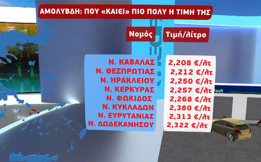 Σε αρκετές περιοχές της χώρας η τιμή του λίτρου στην αμόλυβδη έχει φθάσει πλέον τα 2,50 ευρώ, όπως στην Κύθνο, την Σαντορίνη, την Αμοργό σύμφωνα με το ρεπορτάζ του Mega.