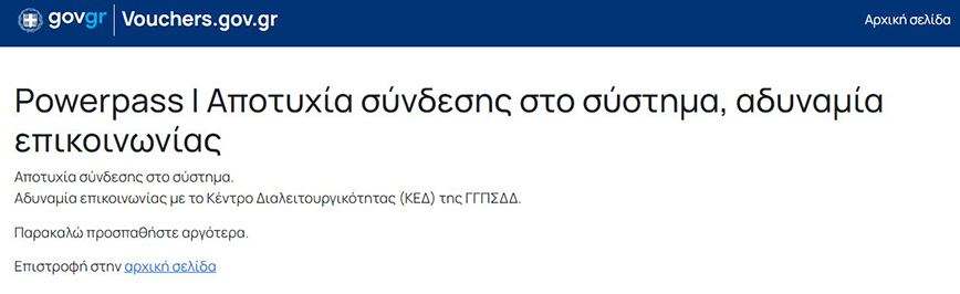 Πρόβλημα με την είσοδο στην πλατφόρμα Power Pass αντιμετωπίζουν πολίτες που θέλουν να υποβάλλουν την αίτησή τους σήμερα το πρωί.