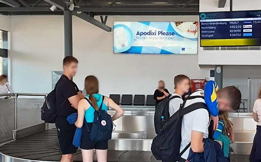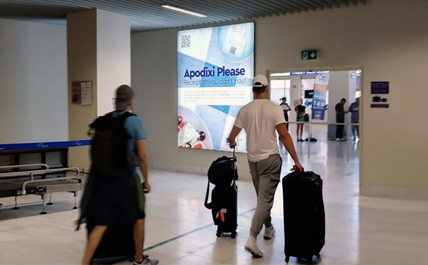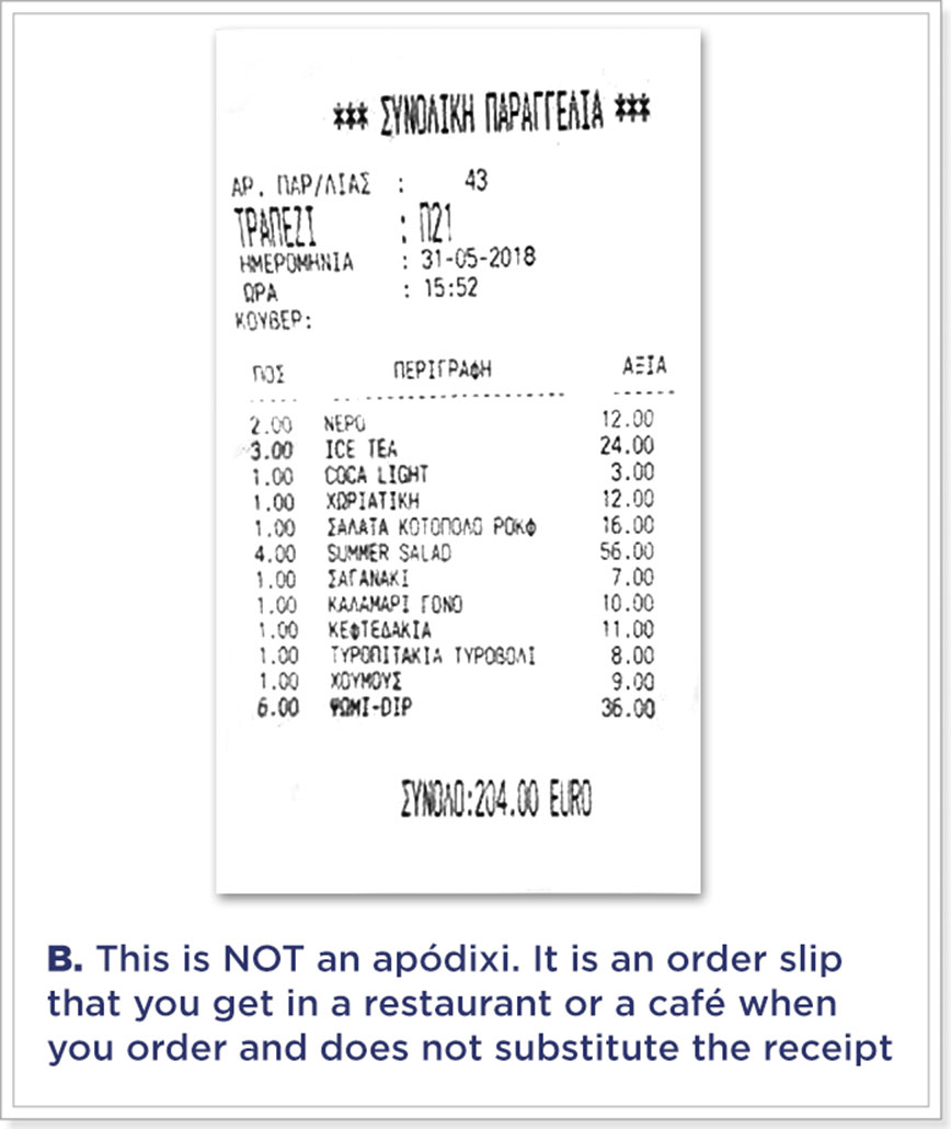 Είναι ο νόμος, είναι δικαίωμά σας! Πριν πληρώσετε για ένα προϊόν ή υπηρεσία, ζητήστε ευγενικά απόδειξη, λέγοντας, “Apodixi Please”, που σημαίνει. “Απόδειξη παρακαλώ!”. Αν δεν σας δώσουν, δεν υποχρεούστε να πληρώσετε. Απολαύστε τη διαμονή σας».