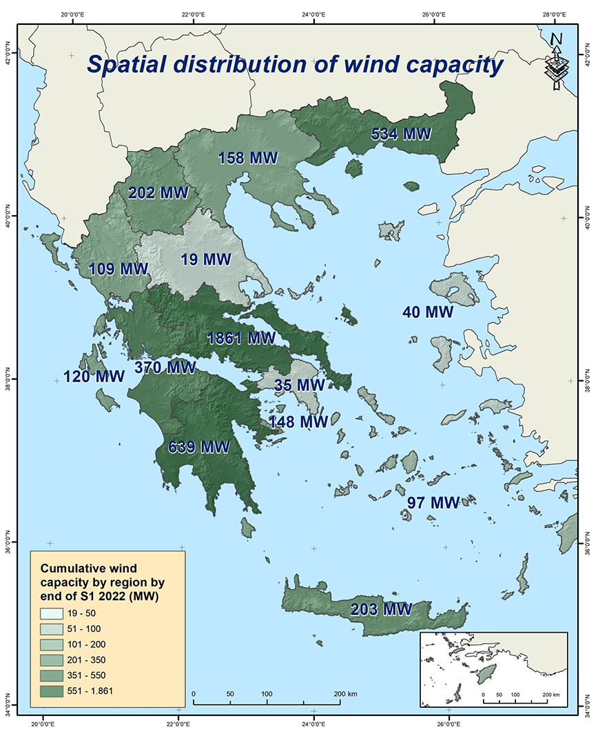 Κατά την περίοδο 2018 – 2021 έχουν επιλεγεί μέσω των διαγωνισμών της Ρυθμιστικής Αρχής Ενέργειας αιολικά πάρκα συνολικής ισχύος 1.426 MW. Όμως εξαιτίας κυρίως των καθυστερήσεων που προκαλούν τα γραφειοκρατικά εμπόδια, μόλις τα 312 MW, δηλ. το 22%, είχαν κατορθώσει να λειτουργούν κατά το τέλος του Ιουνίου 2022.
