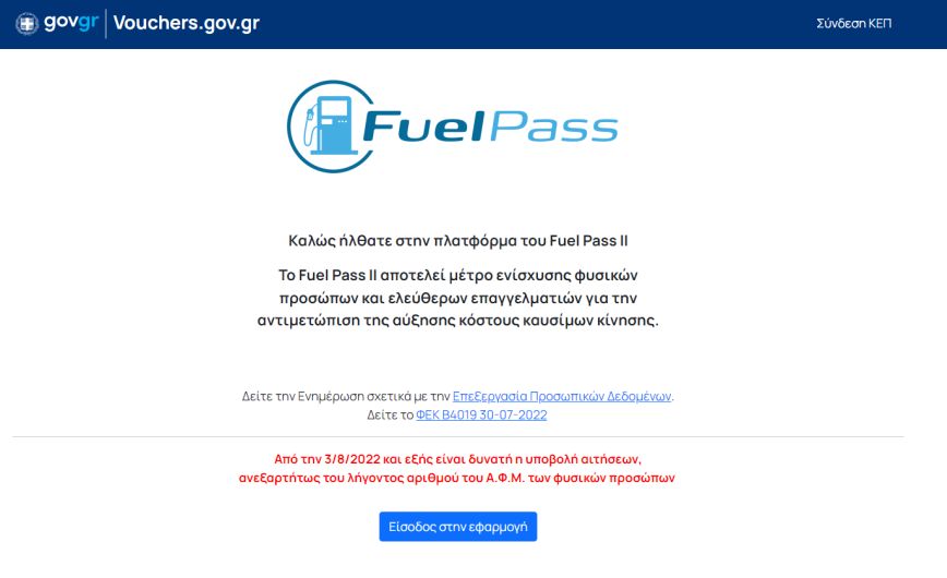 Εδώ μπορείτε να μπείτε στην ηλεκτρονική πλατφόρμα Fuel Pass 2