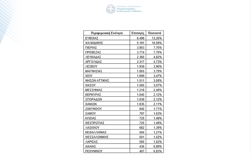 Τον Αύγουστο ενεργοποιήθηκαν συνολικά 49.000 επιταγές κοινωνικού τουρισμού 2022-2023 σε τουριστικά καταλύματα της χώρας, σημειώνοντας αύξηση κατά 4% συγκριτικά με τον αριθμό των επιταγών που ενεργοποιήθηκαν στο αντίστοιχο διάστημα πέρσι, σύμφωνα με ανακοίνωση της Δημόσιας Υπηρεσίας Απασχόλησης (ΔΥΠΑ). Επίσης, ενεργοποιήθηκαν περισσότερες από 5.500 επιταγές ακτοπλοϊκής μεταφοράς.