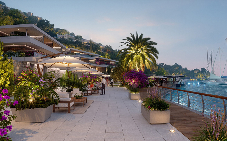 Κεντρικό στοιχείο του project είναι ένα ξενοδοχείο 5 αστέρων και branded κατοικίες, υπό την ομπρέλα και με τη συνεργασία του Luxury Hotel brand «One Ηotels», ως operator. Θα περιλαμβάνει επίσης μια οικιστική κοινότητα, μαρίνα 64 θέσεων (θα φιλοξενεί σούπερ γιοτ καθώς και μικρότερα σκάφη), ιδιωτικές παραλίες, κλαμπ, εστιατόρια, παρεκκλήσι, πάρκο, βοτανικό κήπο και άλλες υποδομές και ανέσεις που μαζί θα συνθέσουν ένα θέρετρο που θα κατοικείται όλο το χρόνο, με περιόδους αιχμής εκείνη του Μαΐου – Οκτωβρίου. Η διαχείρισή της θα γίνεται από την κορυφαία εταιρεία του είδους στον κόσμο, Camper & Nicholson, θα διαθέτει boutique ξενοδοχείο, yacht club, τραπεζαρία και αγκυροβόλιο για σκάφη που εκτείνονται έως και τα 70 μέτρα.