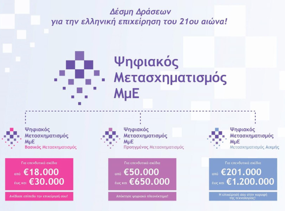 Προκηρύχθηκε η πολυαναμενόμενη δέσμη δράσεων για τις μικρομεσαίες επιχειρήσεις «Ψηφιακός Μετασχηματισμός ΜμΕ», που εντάσσεται στο νέο πρόγραμμα «Ανταγωνιστικότητα» του ΕΣΠΑ 2021 – 2027. Στόχος είναι η αντιμετώπιση της υστέρησης των ελληνικών επιχειρήσεων στην υιοθέτηση και ενσωμάτωση των σύγχρονων ψηφιακών τεχνολογιών στην παραγωγική τους δραστηριότητα.