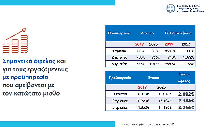 Σημειώνεται επίσης ότι όσοι είχαν συμπληρώσει τουλάχιστον μία τριετία στην εργασία τους, μέχρι τον Φεβρουάριο του 2012, έχουν επιπλέον αποδοχές, οι οποίες μπορούν να φτάσουν μέχρι και το 30%, ανάλογα με τα έτη προϋπηρεσίας.