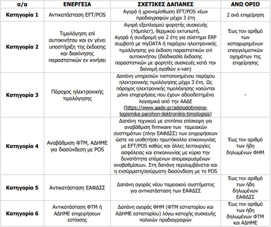 - για αναβάθμιση ΦΤΜ, ΑΔΗΜΕ για διασύνδεση με POS