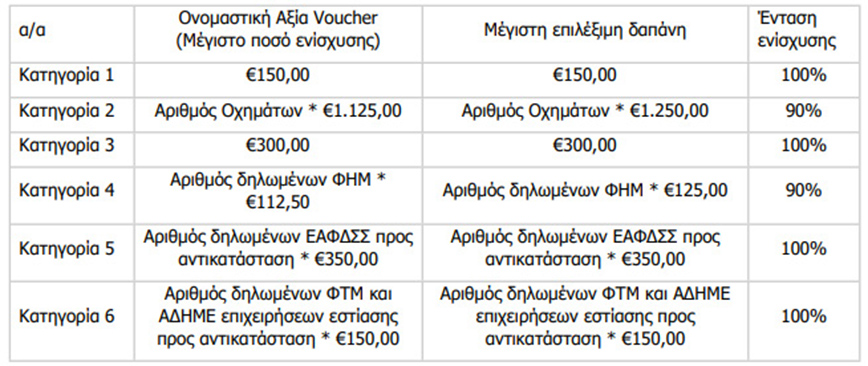 Σύμφωνα με την τελευταία τροποποίηση της σχετικής πρόσκλησης – αργά το απόγευμα της περασμένης Παρασκευής – το ποσό των voucher ανέρχεται σε: