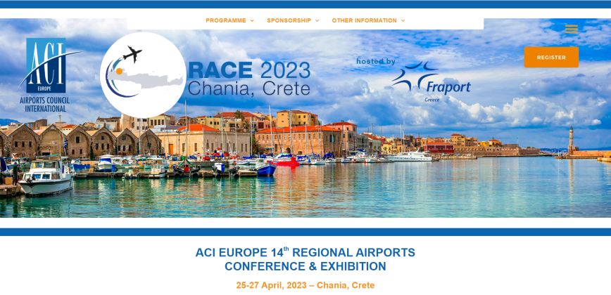 Η Fraport Greece, φορέας διαχείρισης και λειτουργίας των 14 περιφερειακών αεροδρομίων έχει την τιμή να φιλοξενήσει, για πρώτη φορά στην Ελλάδα, τη 14η ετήσια συνάντηση των Διαχειριστών Ευρωπαϊκών Αεροδρομίων (ACI EUROPE 14th Regional Airports Conference & Exhibition, RACE 2023), η οποία θα πραγματοποιηθεί το διάστημα 25-27 Απριλίου 2023, στα Χανιά της Κρήτης. Περισσότερα από 150 στελέχη της κοινότητας των περιφερειακών αεροδρομίων από όλη την Ευρώπη, θα έχουν την ευκαιρία να βρεθούν στην πανέμορφη πόλη της Κρήτης και να ανταλλάξουν απόψεις, σκέψεις και καλές πρακτικές, σε θέματα που αφορούν στην αγορά των αερομεταφορών.