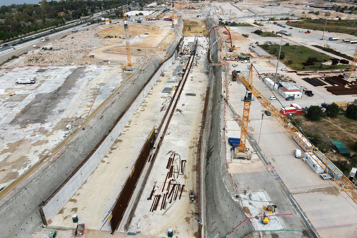 Βασική προτεραιότητα σε όλο το έργο, από τον αρχικό του σχεδιασμό μέχρι την ολοκλήρωση του σε κάθε του φάση, όπως τονίζει με κάθε ευκαιρία, ο διευθύνων σύμβουλος της LAMDA Development, Οδυσσέας Αθανασίου, είναι η κατασκευή του έργου με «πράσινες» πρακτικές που βασίζονται στις αρχές της κυκλικής οικονομίας. Στο πλαίσιο αυτό, μεταξύ άλλων, ολοκληρώνονται οι εργασίες των μονάδων σκυροδέματος και μέχρι το καλοκαίρι θα λειτουργούν 2 υπερσύγχρονες μονάδες έτοιμου σκυροδέματος (σε συνεργασία με τις εταιρείες ΤΙΤΑΝ και Lafarge Ηρακλής). Θα εξυπηρετεί τις ανάγκες του έργου, επιτυγχάνοντας ταυτόχρονα τη μικρότερη δυνατή όχληση στους πολίτες μιας και δεν επιβαρύνεται η κυκλοφορία στην παραλιακή αλλά και άλλες κεντρικές λεωφόρους από τα ειδικά βαριά οχήματα μεταφοράς σκυροδέματος.