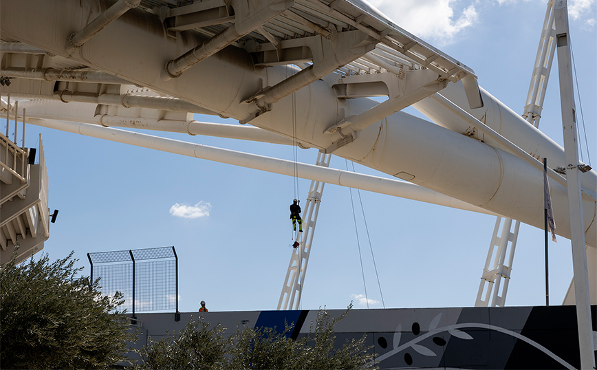 Σε εξέλιξη βρίσκεται ο έλεγχος των μεταλλικών κατασκευών «Καλατράβα» στο συγκρότημα του Ολυμπιακού Αθλητικού Κέντρου Αθηνών (ΟΑΚΑ) έπειτα από σχετικό διαγωνισμό που διενήργησε η Μονάδα Συμβάσεων Στρατηγικής Σημασίας (Project Preparation Facility) του Ταμείου για λογαριασμό του Υφυπουργείου Αθλητισμού και του ΟΑΚΑ, όπως ανακοίνωσε το ΤΑΙΠΕΔ.