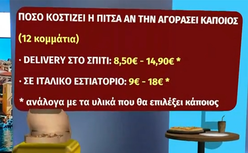 Αν τώρα παραγγείλεις πίτσα με 12 κομμάτια να στη φέρουν στο σπίτι ή πας σε ένα εστιατόριο για να τη φας, τότε στην πρώτη περίπτωση πληρώνεις από 8,5-14,90 ευρώ και στη δεύτερη από 9-18 ευρώ, ανάλογα βέβαια και με τα υλικά που θα επιλέξεις.