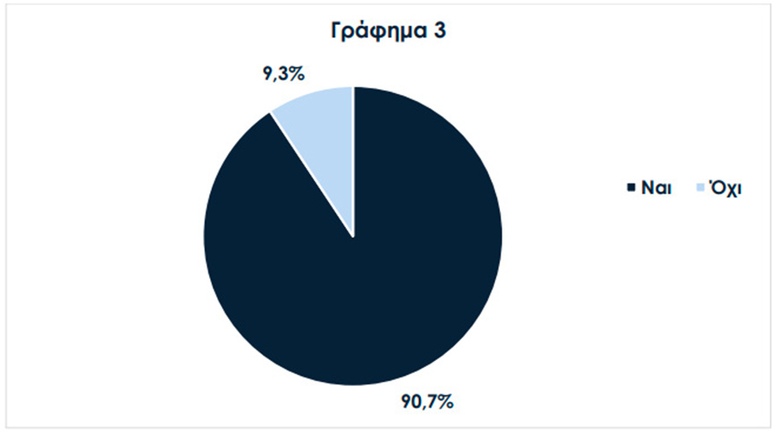 Περίπου 9 στις 10 επιχειρήσεις και συγκεκριμένα το 90,7% του δείγματος αναζητεί ανθρώπινο δυναμικό στην παρούσα χρονική συγκυρία, έναντι 9,3% του δείγματος που δεν αναζητεί.