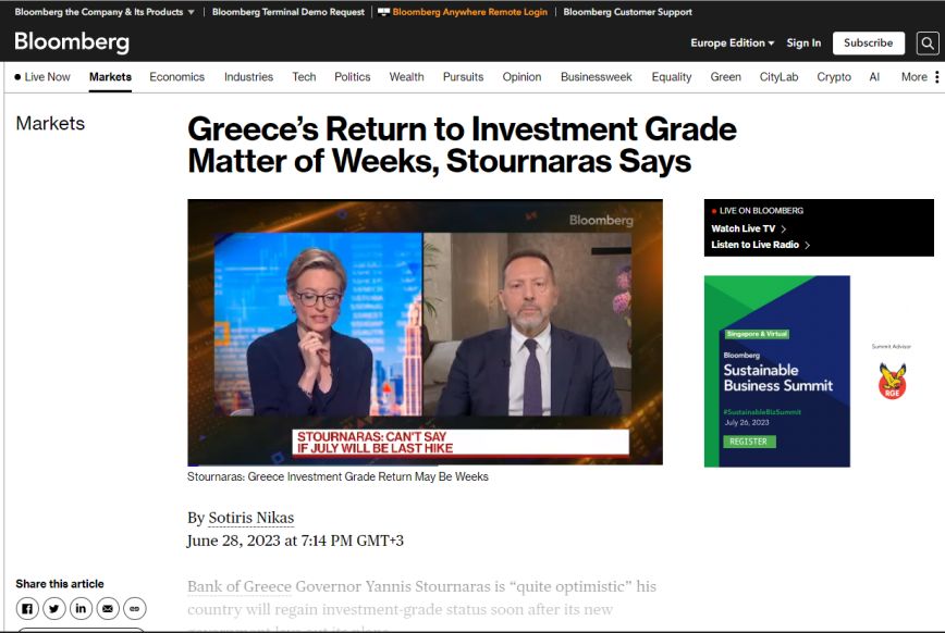 «Αυτή η κυβέρνηση θέλει να κάνει μεταρρυθμίσεις, επομένως είμαι βέβαιος ότι μετά τις προγραμματικές δηλώσεις που θα κάνει η κυβέρνηση στο κοινοβούλιο, η επενδυτική βαθμίδα θα είναι θέμα λίγων εβδομάδων, αν όχι ημερών».