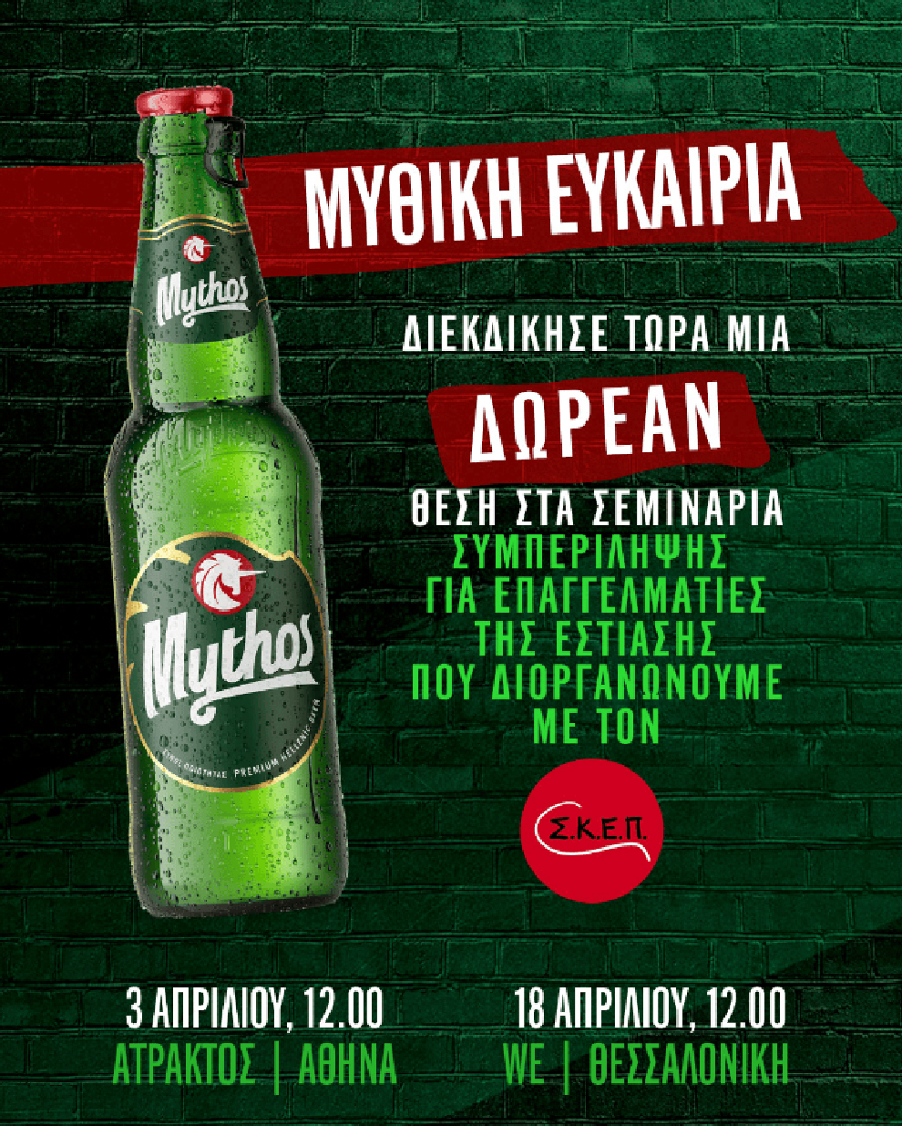 Τα σεμινάρια θα πραγματοποιηθούν σε Αθήνα και Θεσσαλονίκη, και μπορείτε να δηλώσετε για δωρεάν συμμετοχή, μέσα από τη σελίδα Instagram του brand Mythos, εδώ!