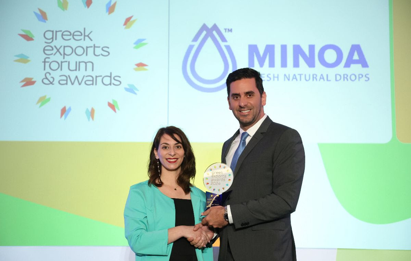 Τρία χρυσα βραβεία απέσπασε το Minoa Water στις κατηγορίες “Top Manufacturing Export Company”, “Top Export Product” και “Top Export Packaging” στον διαγωνισμό Greek Export Award που διεξήχθη στις 26 Απριλίου, μέσα σε μια εντυπωσιακή εκδήλωση υπό την αιγίδα του Υπουργείου Εξωτερικών, στο Divani Apollon Palace & Thalasso.