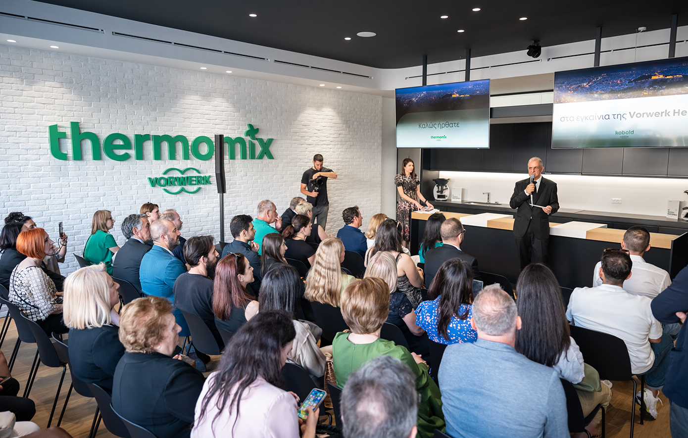 Στη συνέχεια τον λόγο πήρε ο Γενικός Διευθυντής της Vorwerk Eλλάδας και Κύπρου, Γιάννης Σκλάβαινας : «Είναι μια ιδιαίτερη στιγμή για τη Vorwerk Hellas, καθώς απέκτησε πλέον το δικό της σπίτι στην όμορφη πόλη της Κηφισιάς. Η κοινότητα των συμβούλων και των πελατών μας θα είναι ευπρόσδεκτη εδώ για να γνωρίσουν τα προϊόντα μας και να ανακαλύψουν τον κόσμο του Thermomix και του Kobold. Το μοντέλο που ακολουθούμε στη Vorwerk Hellas είναι ένα επιτυχημένο μοντέλο και είμαστε ευτυχείς που βρισκόμαστε κάτω από έναν πολύ ισχυρό Όμιλο με 100.000 συμβούλους παγκοσμίως. Ήδη τους τελευταίους έξι μήνες η ελληνική ομάδα έχει λάβει τη σωστή εκπαίδευση και καθοδήγηση που της έφερε και τις πρώτες επιτυχίες».