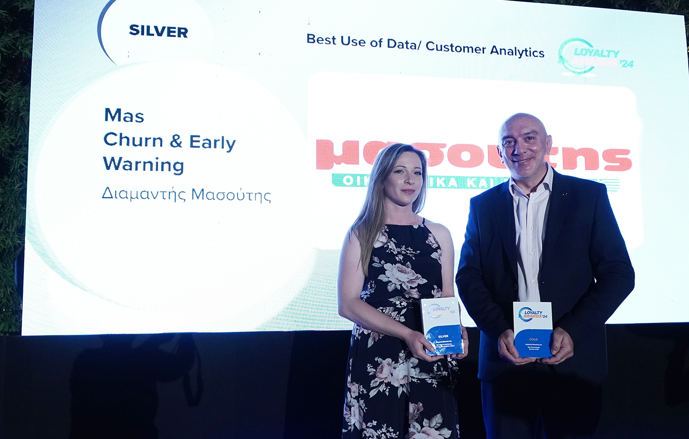 - Silver βραβείο στην κατηγορία Best Use of Data/ Customer Analytics για το Mas-Churn & Early Warning. Πρόκειται για ένα έργο που περιλαμβάνει ανάλυση σε βάθος των δεδομένων πωλήσεων, καταναλωτικής συμπεριφοράς και αγοραστικών προφίλ πελατών και ανάπτυξη μοντέλου που εντοπίζει High Churn Probability και την αντιμετωπίζει.