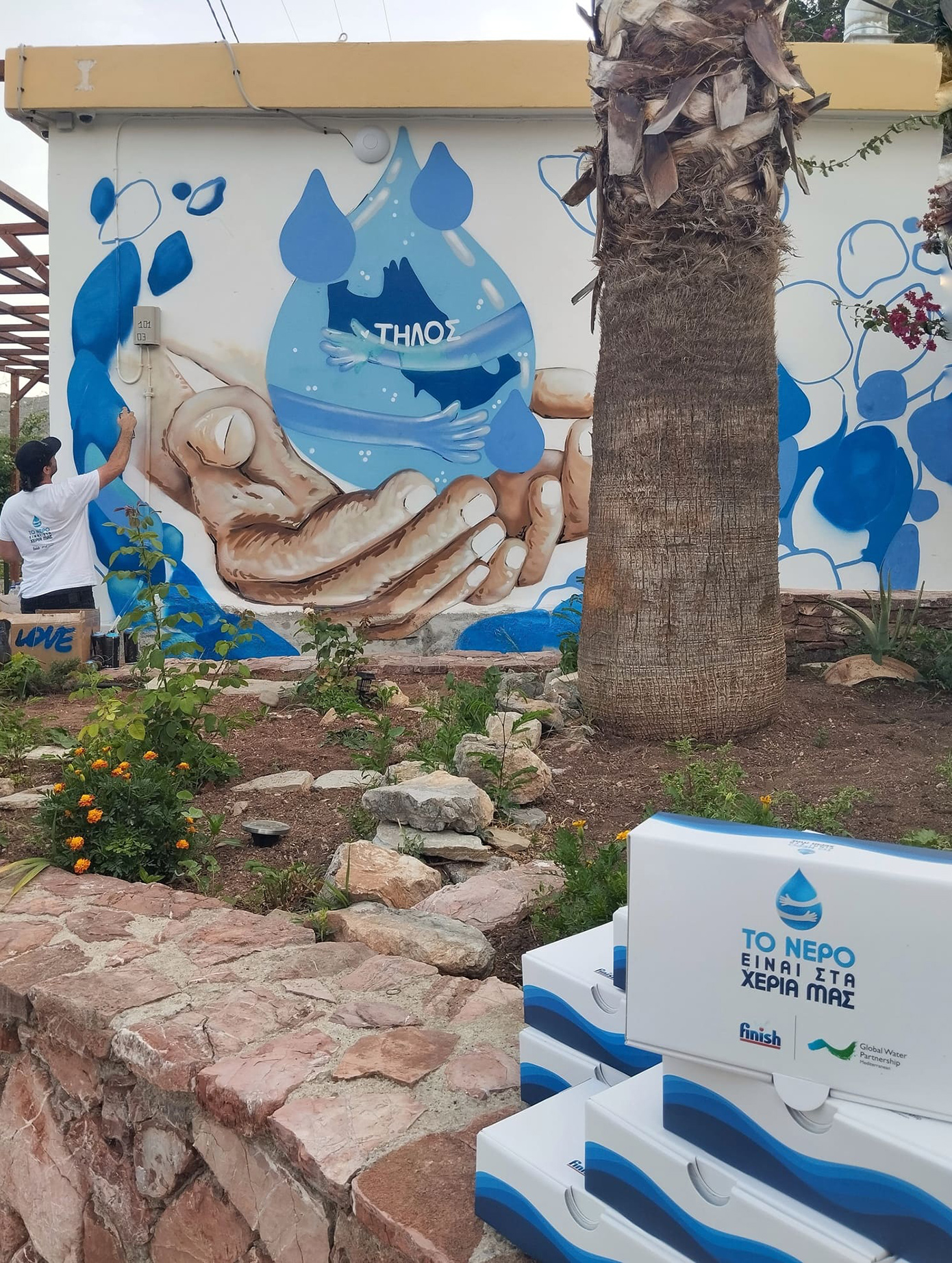 Για ακόμη μια χρονιά, ο διάσημος Street Artist Yiakou και μικροί και μεγάλοι κάτοικοι του νησιού συν-δημιούργησαν ένα μοναδικό εικαστικό έργο τέχνης στην κεντρική πλατεία του Μεγάλου Χωριού της Τήλου. Ένα έργο που θα μείνει ως παρακαταθήκη στο νησί για να υπενθυμίζει σε όλους τη σημασία της εξοικονόμησης νερού.