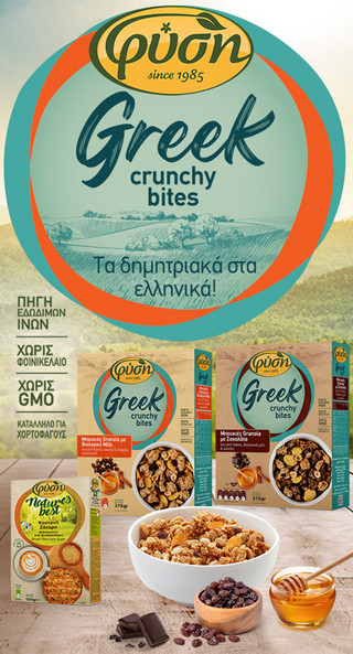 Είτε αναζητάτε την ενέργεια για να ξεκινήσετε ακόμη μια απαιτητική ημέρα στην πόλη, είτε κάτι να σας συντροφεύσει στις καλοκαιρινές σας αποδράσεις, τα δημητριακά ΦΥΣΗ προσφέρουν την τέλεια επιλογή για μια ισορροπημένη και υγιεινή διατροφή. Με υψηλή θρεπτική αξία, πλούσια σε φυτικές ίνες και low sugar, gluten και lacto-free σύνθεση, συνδυάζονται εξαιρετικά με γάλα ή γιαούρτι για ένα θρεπτικό πρωινό γεύμα, αλλά και ως σνακ κάθε στιγμή της ημέρας, ενώ αποτελούν και εξαιρετική επιλογή για vegeterians.