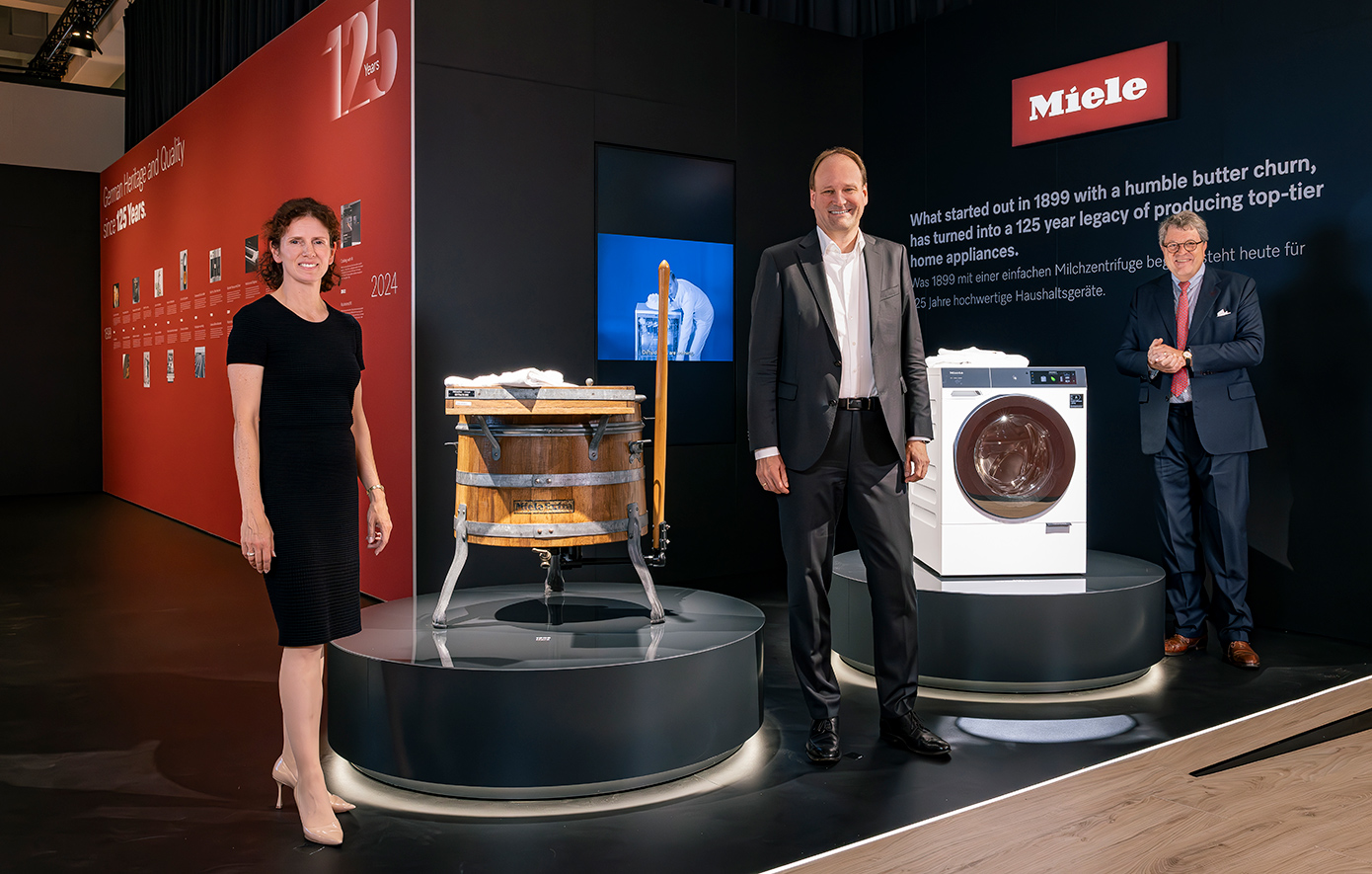 Στην 125η επέτειό της, η Miele παρευρισκόμενη στην IFA, δεν επικεντρώνεται μόνο στις πιο πρόσφατες καινοτομίες προϊόντων, αλλά και στην ιστορία της εταιρείας. Ο Markus Miele (Εκτελεστικός Διευθυντής και Συνιδιοκτήτης), ο Reinhard Zinkann (Εκτελεστικός Διευθυντής και Συνιδιοκτήτης) και η Rebecca Steinhage (Εκτελεστική Διευθύντρια Ανθρώπινων Πόρων και Εταιρικών Υποθέσεων) παρουσίασαν τα κυριότερα σημεία της έκθεσης στη συνέντευξη Τύπου της IFA. Η κορυφαία αντίθεση: το ιστορικό ξύλινο πλυντήριο με κάδο «Hera» από το 1902 δίπλα στο νέο κορυφαίο μοντέλο, την έκδοση W2 Nova.