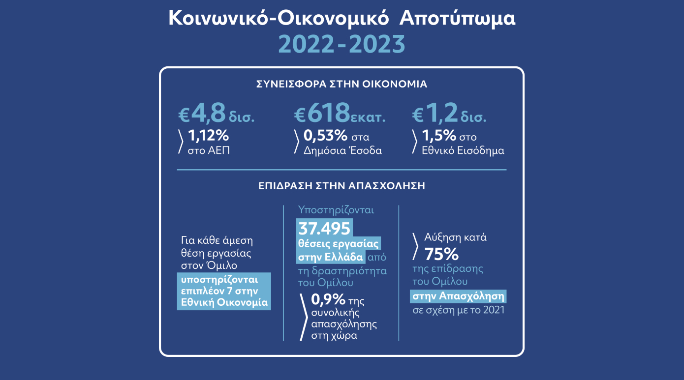 Η οικονομική συμβολή της ΓΕΚ ΤΕΡΝΑ είναι αναμφίβολα σημαντική, με τη συνολική της συνεισφορά στο ΑΕΠ της χώρας να αγγίζει τα 4,8 δισεκατομμύρια ευρώ για την περίοδο 2022-2023, που αντιστοιχεί περίπου στο 1,12% του συνολικού Ακαθάριστου Εθνικού Προϊόντος. Η σημαντική αυτή επίδραση επιβεβαιώνεται και από τη μελέτη «Εκτίμησης Κοινωνικού-Οικονομικού Αποτυπώματος (SEIA)», που πραγματοποιήθηκε με τη συμβολή της PwC Business Solutions AE. Επιπλέον, η θετική επίδραση του ομίλου στα δημόσια έσοδα εκτιμάται σε 618 εκατομμύρια ευρώ, ενώ η συνεισφορά στο εθνικό εισόδημα ανέρχεται στα 1,6 δισεκατομμύρια ευρώ.