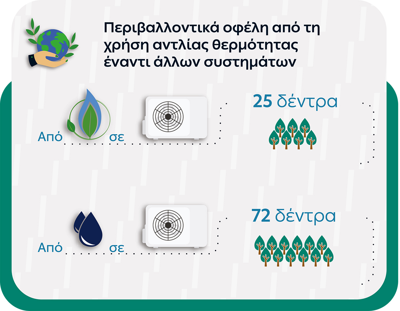 Πιο συγκεκριμένα, η θέρμανση και το ζεστό νερό χρήσης σε έναν χώρο, είναι δύο στοιχεία που επηρεάζουν αρκετά την κατανάλωση ηλεκτρικής ενέργειας και συνεπώς τα έξοδα, καθώς και την εκπομπή ρύπων. Ένα από τα δημοφιλέστερα και αποδοτικότερα συστήματα για θέρμανση και ψύξη του σπιτιού αλλά και ζεστό νερό είναι οι αντλίες θερμότητας, που βασίζονται στη μεταφορά ενέργειας από έναν χώρο χαμηλής θερμοκρασίας σε έναν χώρο υψηλότερης. Συγκρινόμενες με τα συμβατικά συστήματα όπως π.χ. οι καυστήρες πετρελαίου αποδεικνύονται μακράν η πιο βιώσιμη λύση, αφού ένα μέσο νοικοκυριό εγκαθιστώντας την κατάλληλη αντλία θερμότητας, μπορεί να επιτύχει έως 70% εξοικονόμηση ενέργειας, ανάλογα πάντα με το μέγεθος του σπιτιού, τις ανάγκες των πελατών, καθώς και το υφιστάμενο σύστημα θέρμανσης. Η ΔΕΗ μάλιστα ενθαρρύνει τη συγκεκριμένη αγορά, προσφέροντας έως 500€ στους πελάτες για αγορά αντλίας θερμότητας μέσω της ειδικής εφαρμογής, που έχει δημιουργήσει.