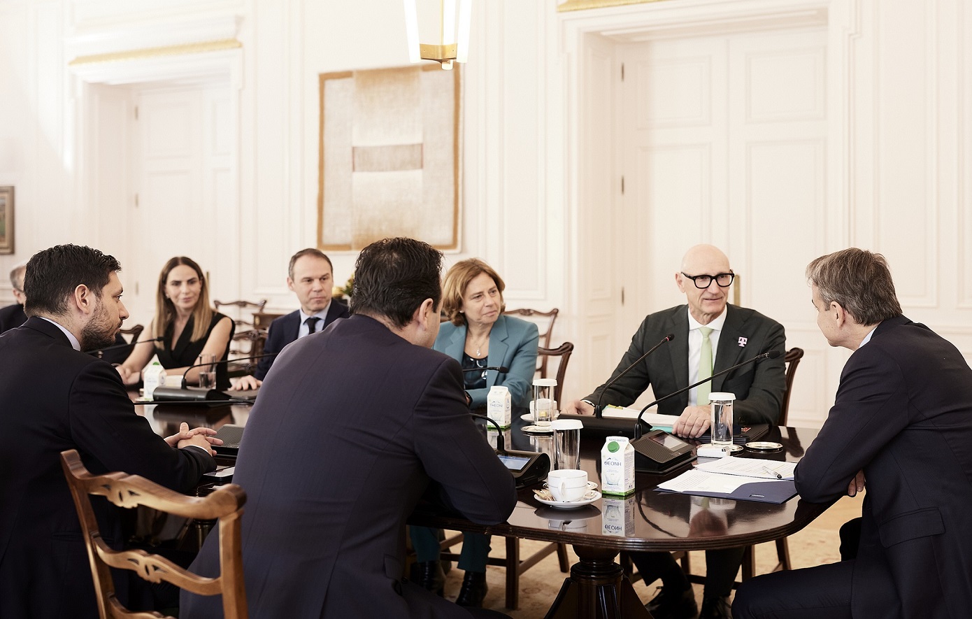 Συνάντηση εργασίας με τον Πρωθυπουργό, κ. Κυριάκο Μητσοτάκη, στο Μέγαρο Μαξίμου, πραγματοποίησε ο CEO του Ομίλου Telekom, κ. Tim Höttges. Στη συνάντηση συμμετείχαν οι Υπουργοί Ψηφιακής Διακυβέρνησης, κ. Δημήτρης Παπαστεργίου και Επικρατείας, κ. Άκης Σκέρτσος, και οι Υφυπουργοί Ψηφιακής Διακυβέρνησης, κ. Κωνσταντίνος Κυρανάκης και παρά τω Πρωθυπουργώ, κ. Γιώργος Μυλωνάκης, καθώς και η επικεφαλής της Telekom για την Ευρώπη, κα Dominique Leroy, ο Senior Vice President for Group Public and Regulatory Affairs της Telekom, κ. Wolfgang Kopf, ο Πρόεδρος και Διευθύνων Σύμβουλος του Ομίλου ΟΤΕ, κ. Κώστας Νεμπής, και η Νομική Σύμβουλος, Chief Officer Νομικών & Ρυθμιστικών Θεμάτων, Public Affairs & Εταιρικής Διακυβέρνησης Ομίλου ΟΤΕ, κα Ειρήνη Νικολαΐδη. Ο κ. Höttges επιβεβαίωσε τη σταθερή δέσμευση της Telekom στην ελληνική αγορά και την εμπιστοσύνη της στις προοπτικές της ελληνικής οικονομίας. Ο Πρωθυπουργός ενημερώθηκε για την πορεία υλοποίησης του στρατηγικού επενδυτικού πλάνου του Ομίλου, ύψους 3 δισ. ευρώ μέχρι το 2027, κυρίως για την επέκταση των δικτυών οπτικών ινών και 5G, ενώ συζητήθηκε η περαιτέρω συμβολή της εταιρείας στον ψηφιακό μετασχηματισμό της Ελλάδας, με στόχο την καθιέρωσή της ως πρωτοπόρου στην Ευρώπη στην ψηφιακοποίηση.