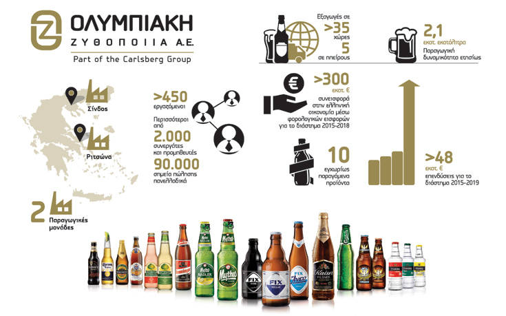 Επιπρόσθετα, το οικονομικό αποτύπωμα της δραστηριότητας της Ολυμπιακής Ζυθοποιίας στην ελληνική αγορά μέσω της φορολογίας υπολογίζεται σε περισσότερα από 300 εκατ. ευρώ για την περίοδο 2015-2018.