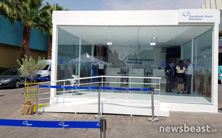 Ο επιβάτης κάνει «Check in», παραδίδοντας τις αποσκευές του, σα να είναι στο αεροδρόμιο, αλλά δε βρίσκεται σε αεροδρόμιο. Απλώς έχει επισκεφθεί το περίπτερο της Fraport Greece στην 84η Διεθνή Έκθεση Θεσσαλονίκης!