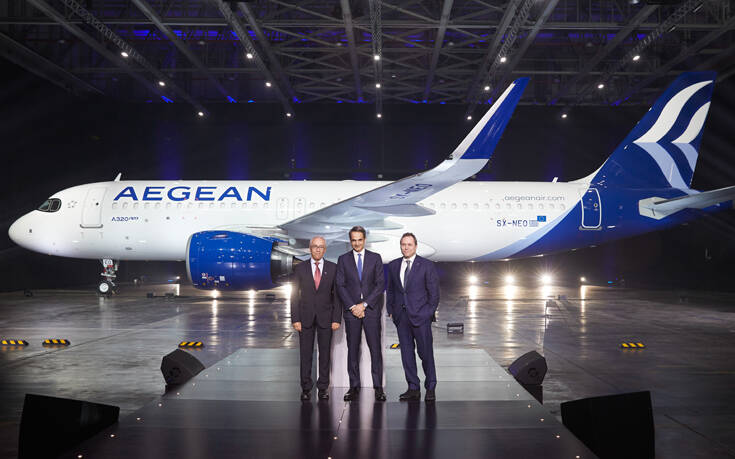 Στην τελετή παραλαβής των πρώτων τριών νέων αεροσκαφών από συνολικά 46 Airbus της Aegean, στην Τεχνική βάση της Aegean (Διεθνής Αερολιμένας Αθηνών) παραβρέθηκε και ο πρωθυπουργός Κυριάκος Μητσοτάκης, ο οποίος απηύθυνε χαιρετισμό.