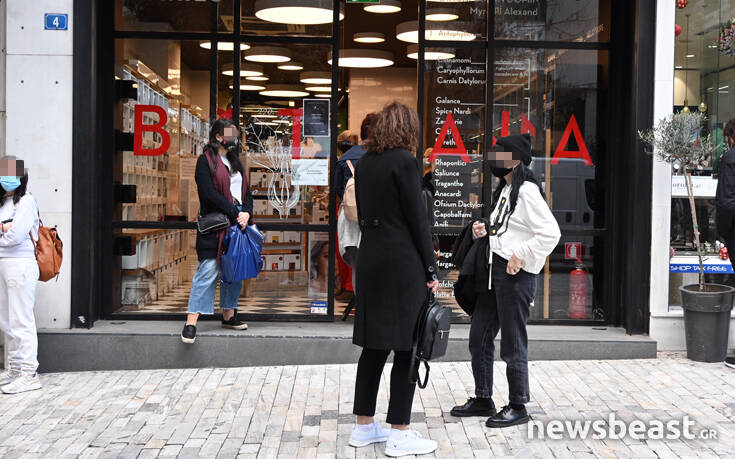 Κλείνοντας ραντεβού ώστε να ψωνίσουν με τη μέθοδο click away, φορώντας μάσκες και τηρώντας όλα τα μέτρα, με στόχο την αποφυγή εξάπλωσης του κορονοϊού, οι Αθηναίοι περίμεναν έξω από τα καταστήματα για να παραλάβουν τα δώρα είτε για τους αγαπημένους τους ανθρώπους, είτε για τον εαυτό τους.