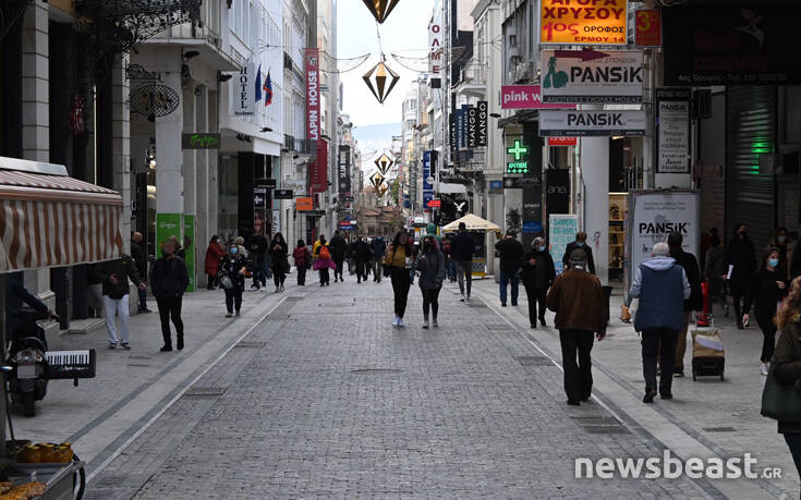 Στον πιο εμπορικό δρόμο της Αθήνας, την Ερμού, βρέθηκαν το πρωί της Τετάρτης (30/12) αρκετοί καταναλωτές για να κάνουν τις τελευταίες τους αγορές λίγο πριν μας αποχαιρετήσει το 2020.