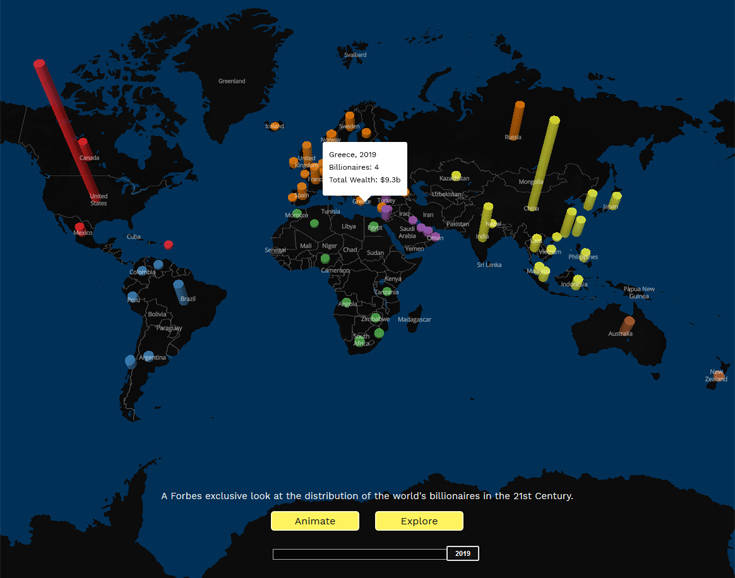 Στη λίστα του Forbes περιλαμβάνονται φέτος και τέσσερις Έλληνες επιχειρηματίες. Ο Φίλιππος Νιάρχος βρίσκεται στην 804η θέση με περιουσία 2,8 δισ. δολάρια, ενώ ο Σπύρος Λάτσης στην 838η θέση με 2,7 δισ. δολάρια.